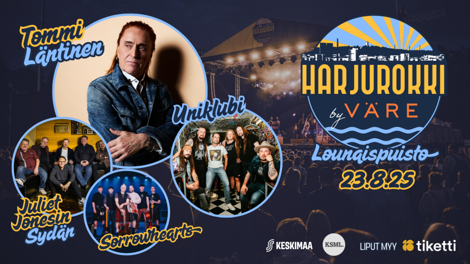 Tummenevassa elokuun illassa nähdään todellisia musiikin legendoja aikuiseen makuun, kun Harjurokin lavalle nousevat karismaattinen ja upeaääninen rock-ikoni Tommi Läntinen, listojen kestomenestyjä ja aina varma yhteislaulattaja, pian uutta musiikkia julkaiseva Uniklubi, menneiden vuosikymmenten nostalgiaa huokuva Juliet Jonesin Sydän sekä takuuvarmasti livesetillään menojalan vipattamaan saava tamperelainen Powerfolk-yhtye Sorrowhearts.