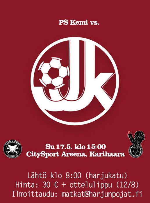 Harjun Pojat ja Keski-Suomen Jalkapalloilun tuki ry järjestävät otteluun bussireissun – bussissa on tilaa, joten mikäli sunnuntainen elämysmatka pohjoiseen kutkuttelee, ei muuta kuin ilmoittautumaan matkat@harjunpojat.fi!
