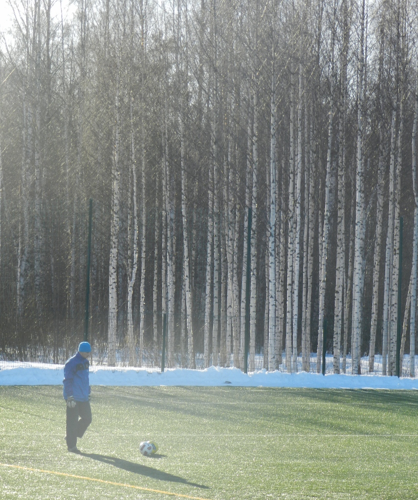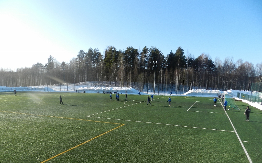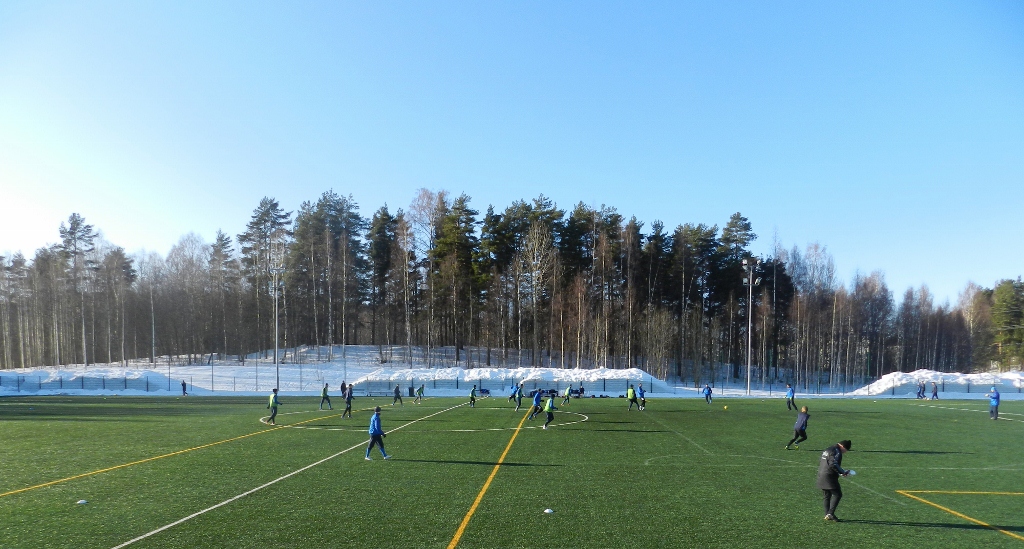 Pelaajat, kenttä ja upea maaliskuinen auringonpaiste.