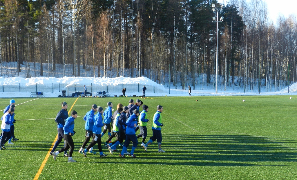 Sää suosi oivallisesti JJK:n kauden ensimmäisiä ulkotreenejä ja kevätaurinko Vehkalammen yllä suorastaan sokaisi. Kentällä kirmasikin ulos pääsystään silminnähden vapautunut kettulauma.