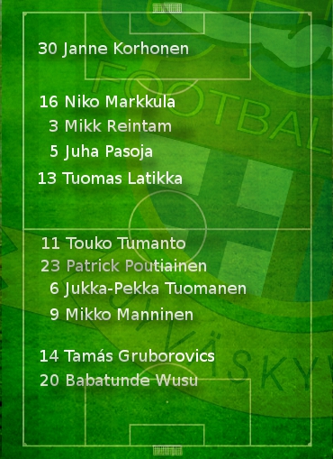 JJK:n avauskokoonpano: Korhonen; Markkula, Reintam, Pasoja, Latikka; Tumanto, Poutiainen, Tuomanen, Manninen; Gruborovics, Wusu