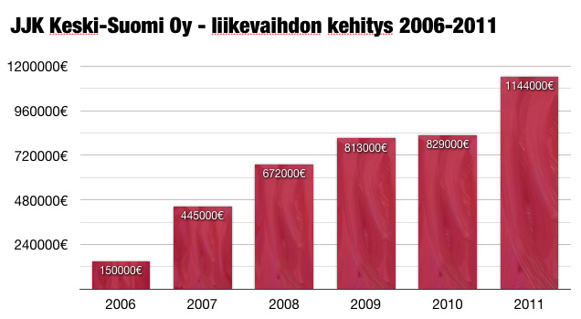 Kasvua liikevaihdossa kertyi peräti 37,9%, kun edellisen vuoden (2010) 829 000 euron liikevaihdosta ponnistettiin komeasti yli miljoonaan euroon, tarkan euromäärän päätyessä summaan 1 144 479,30€.