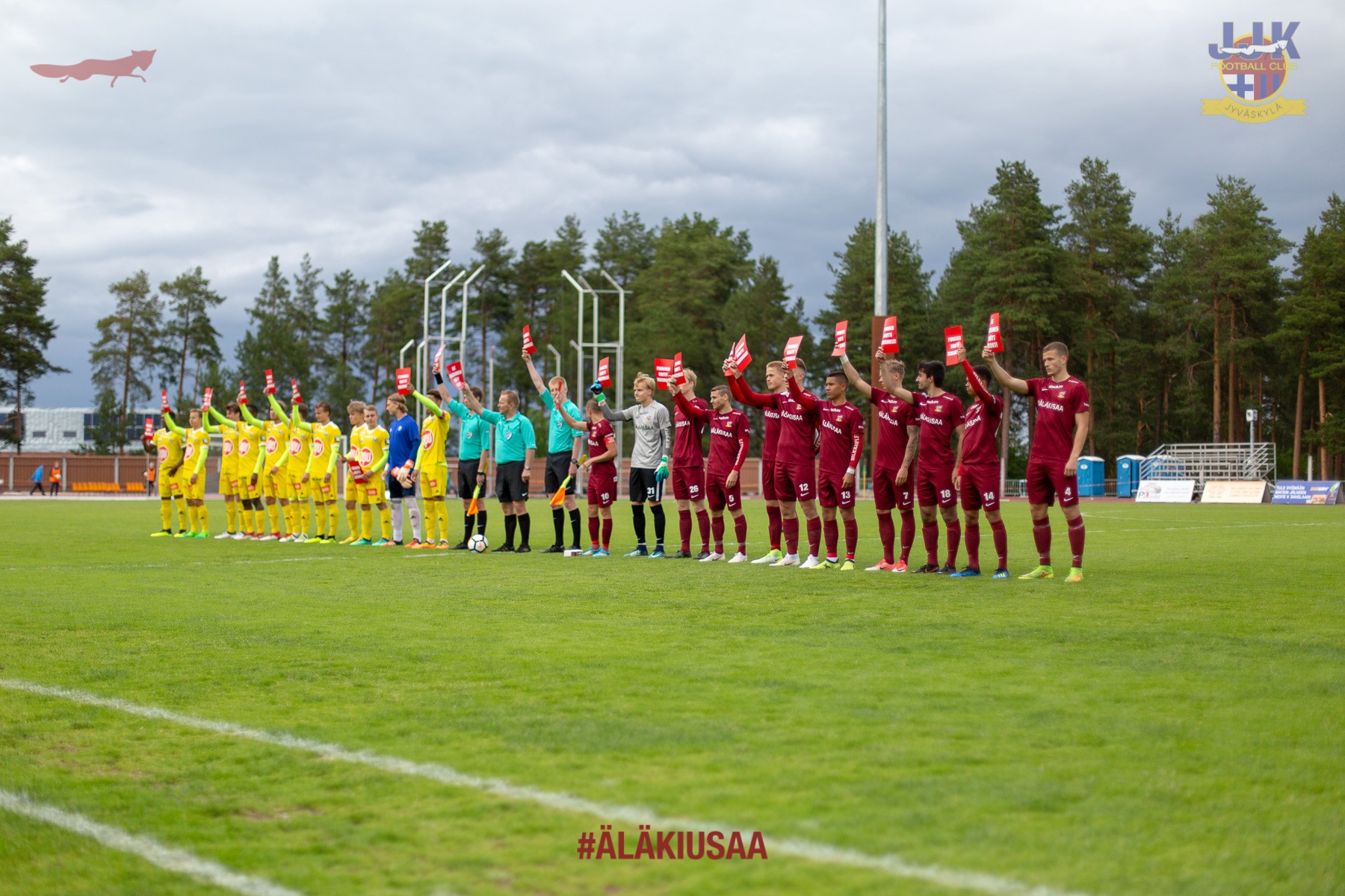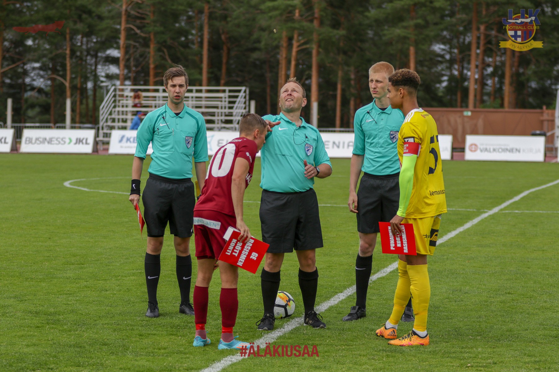 JJK:n avauskokoonpano: Aati Riihimäki (mv); Honar Abdi, Felix Gustavsson, Väinö Vehkonen, Severi Vielma; Tommi Kari (C), Saku Leppänen, Nooa Laine (82 min), Mikko Manninen, Jusif Ali (82 min); Patrik Alaharjula.