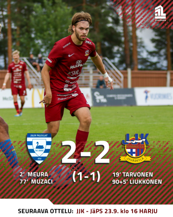 JJK haki Salosta 2-2-vierastasurin loppusarjan ensimmäiseltä kierrokselta. Kotijoukkue karkasi jo kahdesti johtoon, mutta kettulauma taisteli itsensä mukaan pisteille.