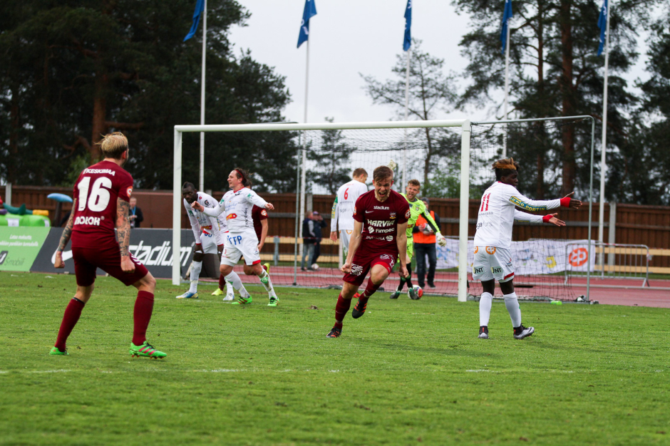 AC Oulu ja TPS pelasivat omat kierroksen ottelunsa sunnuntaina. Oululaiset jäivät maalittomaan tasapeliin KPV:n vieraana. TPS taas haki GrIFK:lta täydet pisteet, kun Mikko Hyyrynen upotti 83. minuutilla voittomaalin rangaistuspotkusta. Voitolla TPS nousi ohi JJK:n – ainakin maanantain otteluun JJK-FF Jaro-otteluun asti.