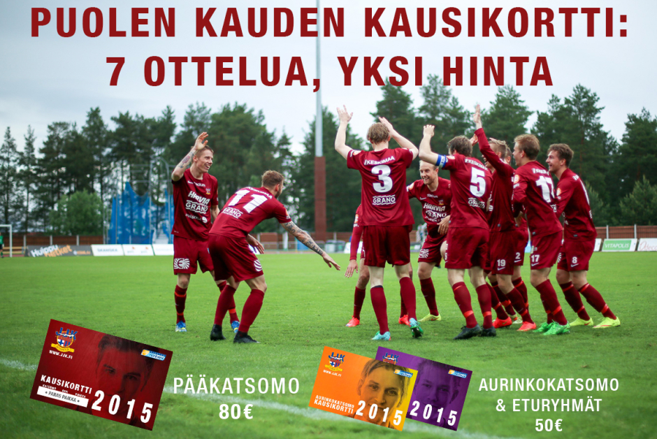 Mikäli ei kausikorttia vielä taskusta löydy, ehdit vielä hankkia sen loppukaudeksi edulliseen hintaan! Puolen kauden kausikortin jäljellä oleviin seitsemään otteluun voit lunastaa itsellesi pääkatsomoon 80 euron hintaan ja aurinkokatsomoon sekä eturyhmille kausikortti kustantaa vain 50 euroa! Kaikki kortit tulevat halvemmaksi kuin vastaavien yksittäisten pääsylippujen ostaminen.