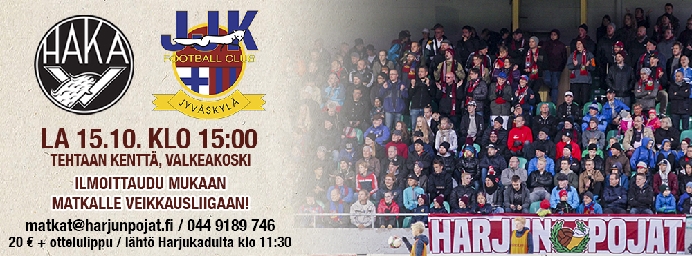 Kaudelle 2016 kierroksia Ykkösessä on enää jäljellä kaksi ja seuraava Kettupaitojen ottelu pelataan vieraskentällä Valkeakosken Hakan vieraana viikon kuluttua lauantaina 15.10. JJK-kannattajat matkaavat jälleen kettupaitojen tueksi ja ovat valmiita antamaan kaiken mahdollisen tuen katsomossa! Viimeinen ja samalla Veikkausliiga-paikkojen kannalta äärimmäisen jännittävä kierros pelataan Jyväskylässä 22.10. lauantaina, kun klo 15:00 Harjun stadionille vastaan astelee sarjakolmantena vaaniva AC Oulu. Nyt jos koskaan kannattaa hankkia ennakkolippusi mobiilikauppa Zupticketistä!