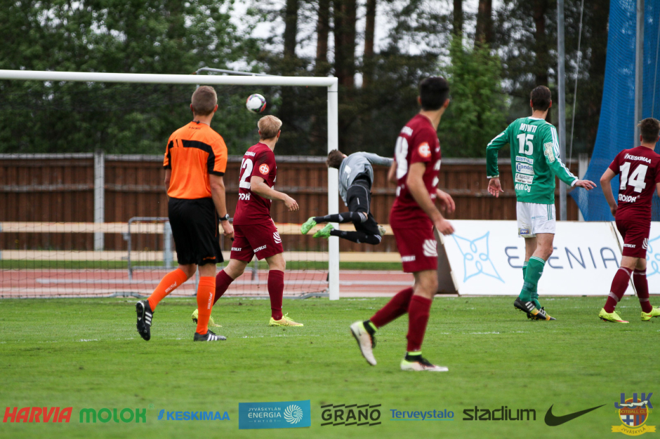 Vähitellen JJK:kin heräsi kunnolla myös hyökkäyspeliin ja kotijoukkue sai revetä riemuun ensimmäistä kertaa, kun vajaat puoli tuntia oli pelattu. JJK sai ensimmäisen kulmapotkunsa, jonka antoi totuttuun tapaan Tommi Kari.