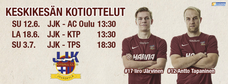 JJK:n kokoonpano: Teppo Marttinen; Honar Abdi, Matti Lähitie (67' Itkonen), Antto Tapaninen, Niko Markkula (84' Tahvanainen); Benno Hanslian, Saku Leppänen, Tommi Kari (c) (v), Mikko Manninen (71' Suoraniemi); Iiro Järvinen (v); Aleksis Lehtonen.