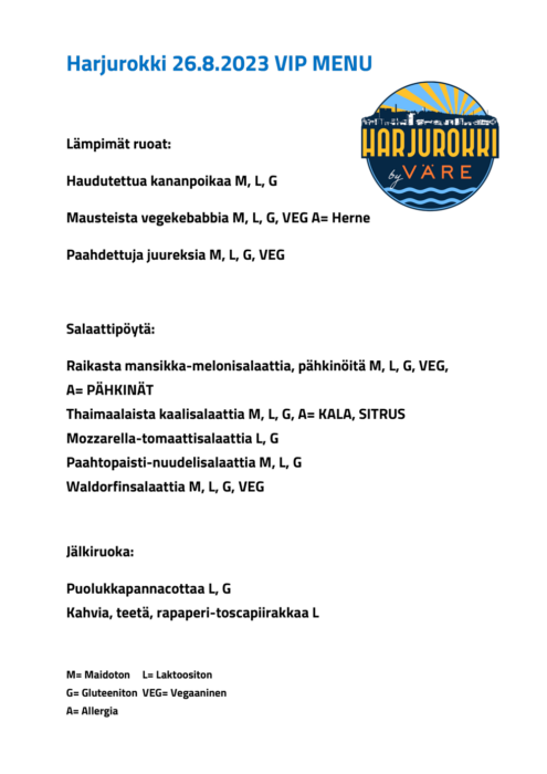 Harjurokki VIP Buffet -menun näet alta (klikkaa kuva isommaksi)