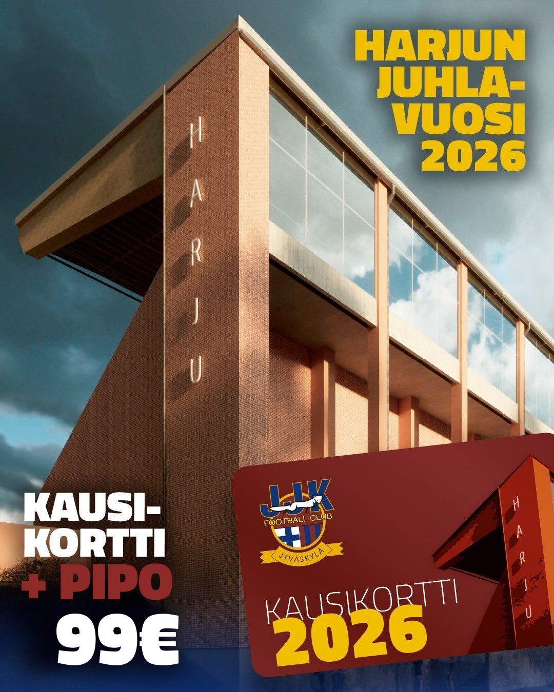 JJK kutsuu sinut mukaan historialliseen kauteen uudistetulla Harjun stadionilla! Vuonna 2026 juhlimme Harjun uutta aikakautta – ja sinä voit olla mukana alusta asti.