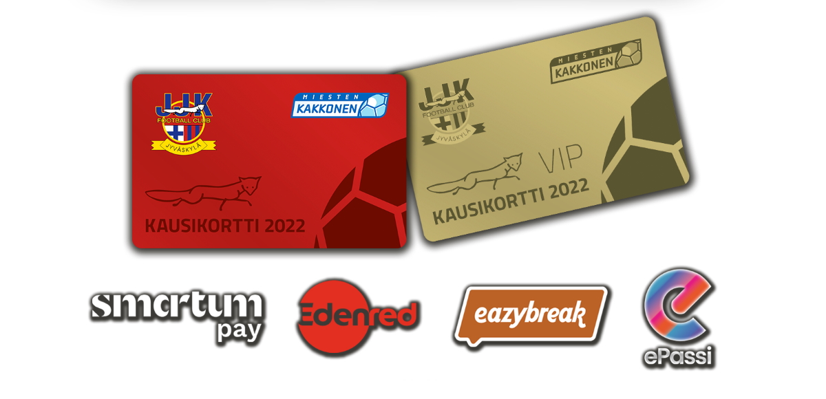 Kausikorttiostoksille vielä ennen joulua?Vanhenevatko käyttämättömät työsuhde-etusi vuoden vaihteessa? Voit hyödyntää vanhenevat etusi näppärästi kausikortin hankkimiseen. Maksuvälineenä tapahtumakaupassamme (tapahtumakauppaan sivun oikean reunan ”osta lippuja” painikkeesta) käyvät Paytrailin tarjoamien normaalien verkkomaksuvaihtoehtojen lisäksi myös SmartumPay, ePassi sekä Eazybreak. Mikäli taas haluat maksaa korttisi Edenredillä, laitathan silloin viestiä sanna.kahila(at)jjk.fi.