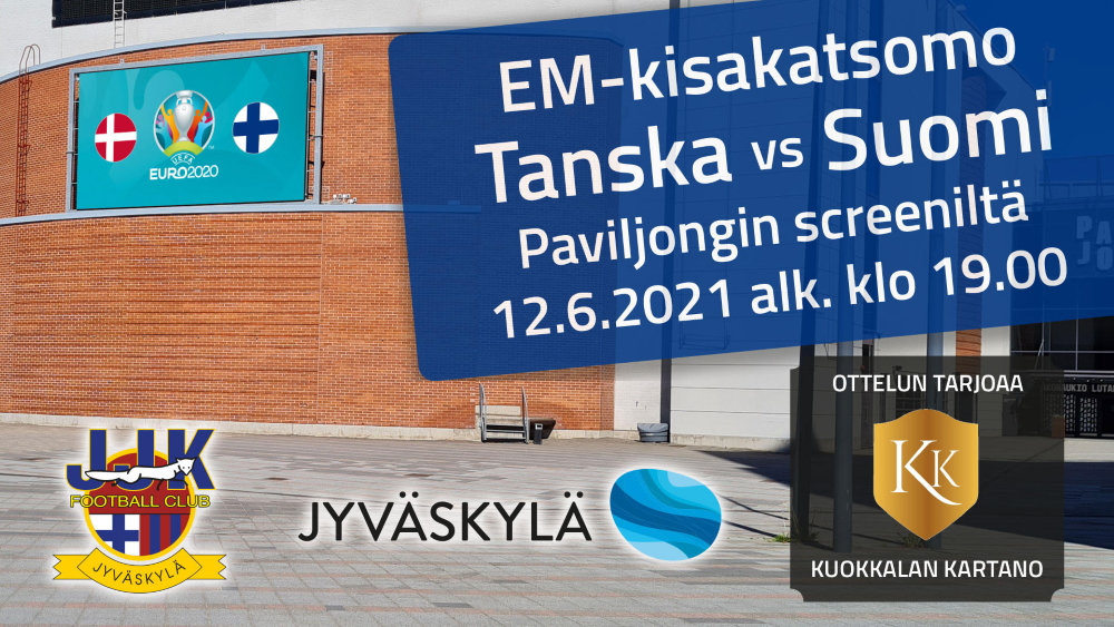 Nyt tehdään historiaa! Suomi kohtaa Tanskan jalkapallon EM-kisojen avausottelussaan lauantaina 12.6. klo 19 alkaen ja tätä herkkua pääsee nyt seuraamaan Paviljongin jättiscreenin edustalle järjestettävässä suuressa ulkoilmakisakatsomossa! Kisakatsomon mahdollistaa Kuokkalan Kartano.