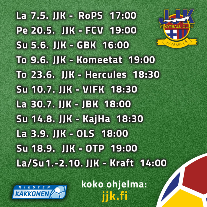 Katso koko ohjelma osoitteesta: jjk.fi/otteluohjelma