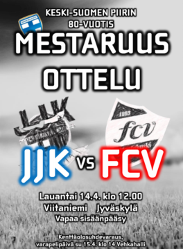 Näitäkin tuoreita sopimuspelaajia nähdään kenties tositoimissa JJK:n seuraavassa ottelussa. JJK pelaa perinteisen Keski-Suomen piirin Mestaruusottelun FC Vaajakoskea vastaan Viitaniemessä lauantaina 14.4. klo 12:00. Mikäli kenttä ei ole vielä pelikunnossa, pelataan ottelu sunnuntaina 15.4. klo 14:00 Vehkahallissa. JJK tiedottaa asiasta lisää tulevan viikon aikana!