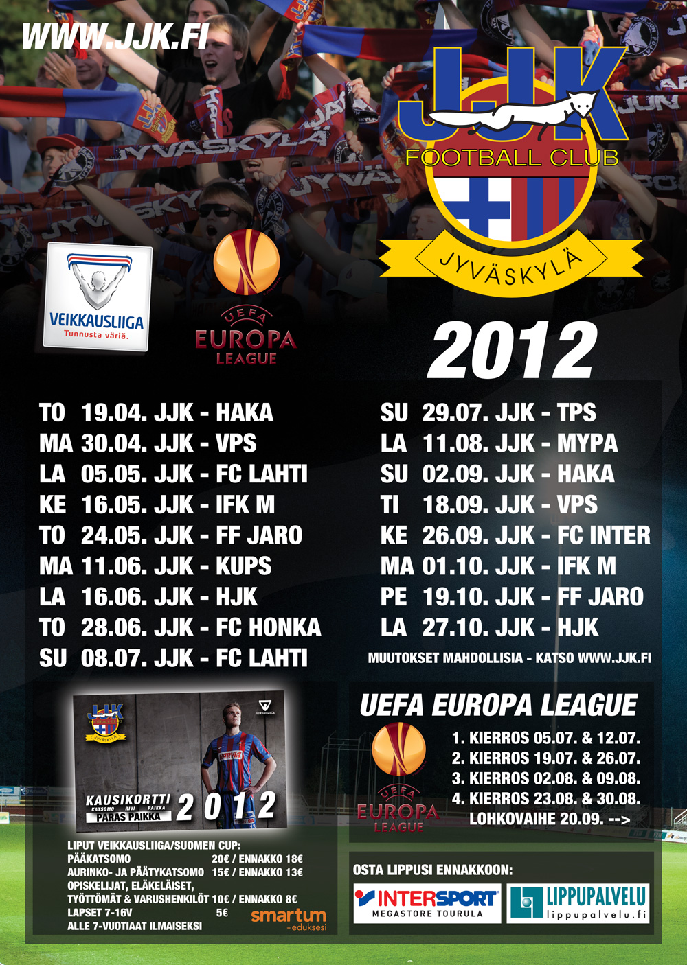 Liigakausi lähestyy – onhan sinullakin jo JJK:n kausikortti? Enemmän otteluita, enemmän tunnelmaa, enemmän eurooppalaisuutta – tilaa omasi kätevästi verkosta klikkaamalla tästä!