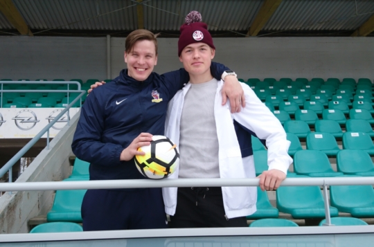 Toimitusjohtaja Caius Forsberg (kuvassa vasemmalla) ja päävalmentaja Manninen pitävät Vehkosta (kuvassa oikealla) huippulupaavana topparina..
