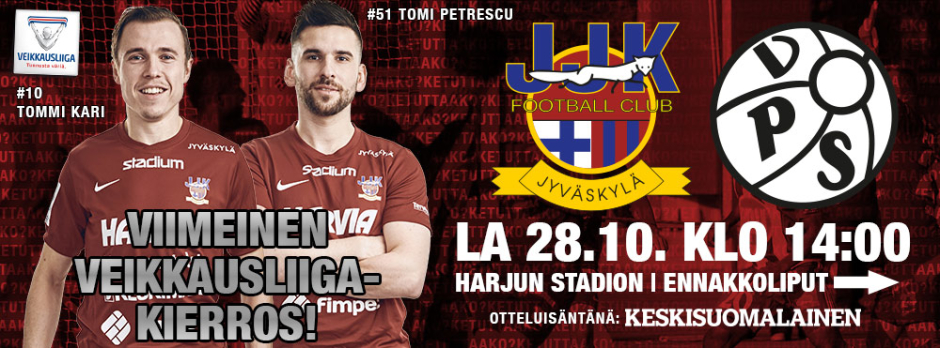 Vieraaksi klo 14 alkavaan kauden päätösotteluun saapuu VPS. Kummallakaan osapuolella ei ole kaudenpäätösottelussa enää panosta sarjasijoituksen osalta: JJK:n urhoollinen taistelu päättyi pettymykseen loppumetreillä, kun toiseksi viimeinen kierros sinetöi sarjaportaan vaihtumisen takaisin Ykköseen. VPS:n sijoitus taas vakiintui alempaan keskikastiin syksyn tappioputken myötä.