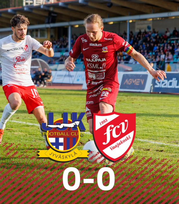 Aivan viimeisillä minuuteilla nähdään vielä pari huippupaikkaa: Genc Kovaqi laittaa vasurillaan JJK-maalin pystypuun helisemään ja perään Reetu Räsänen lähettää pitkällä pystypallolla puolestaan Osson läpijuoksuun ja huippu maalipaikkaan. Osson yritys napsahtaa aavistuksen tolpan väärälle puolelle sivuverkkoon ja näin ottelu päättyy maalittomaan tasuriin.